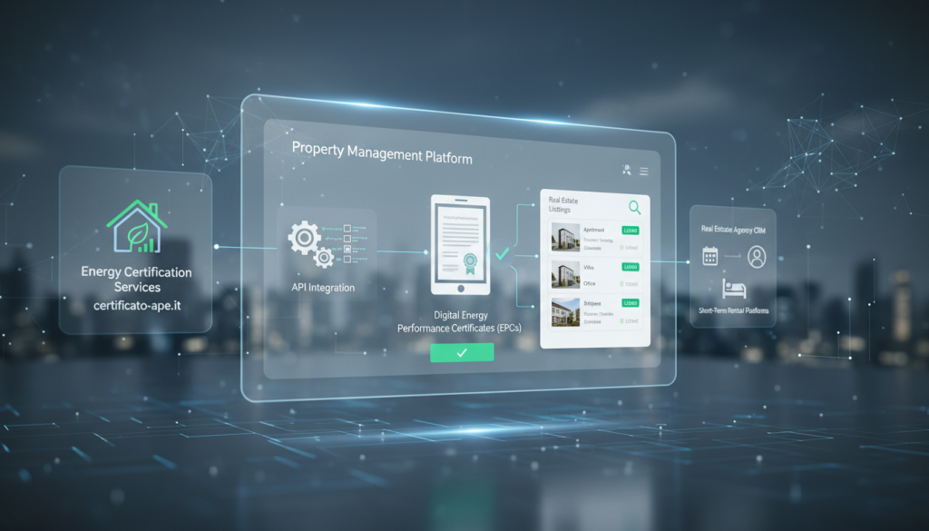 L’evoluzione passa dall’integrazione API dei servizi di certificazione energetica direttamente nei portali di listing, nei CRM per agenzie e nelle piattaforme di affitti brevi. In pratica, invece di dover inserire manualmente i dati della certificazione energetica ogni volta che si pubblica un annuncio o si gestisce un immobile, questi dati vengono trasferiti automaticamente grazie a un collegamento tecnologico (API). Questo rende il lavoro più veloce, preciso e moderno. L’obiettivo è semplice: trasformare un obbligo normativo in una funzione nativa dell’ecosistema digitale immobiliare.
